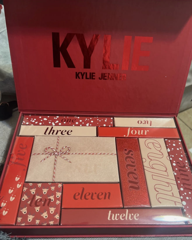 • 12 Days of Kylie calendar featuring one surprise behind each door — a mix of makeup and skincare items UK Advent Calendar+10Macy's+10Li Fashion Specialist+10