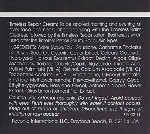 Pevonia Timeless Repair Cream - De-Aging Skin Cream for Face and Neck - Moisturizing Repair Lotion for Dehydrated Skin - Plant-Based & Caviar Facial Cream for Wrinkle Reduction - 1.7 Oz Container